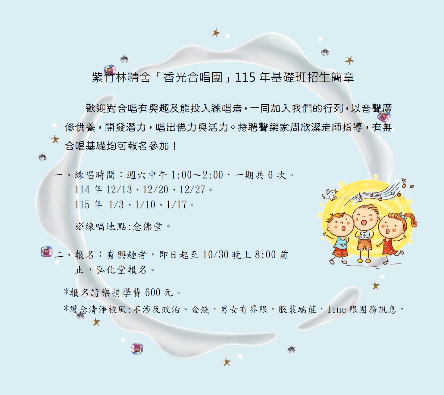 香光舞團、劇團、合唱團、烏克麗麗班、正念拼布、瑜伽班、禪繞畫